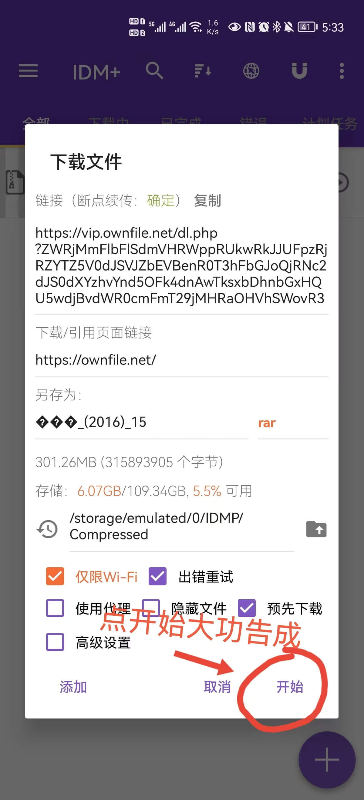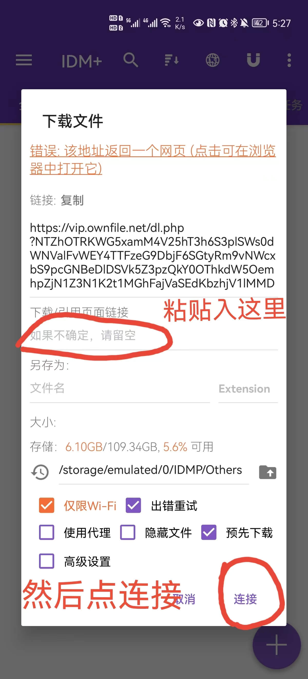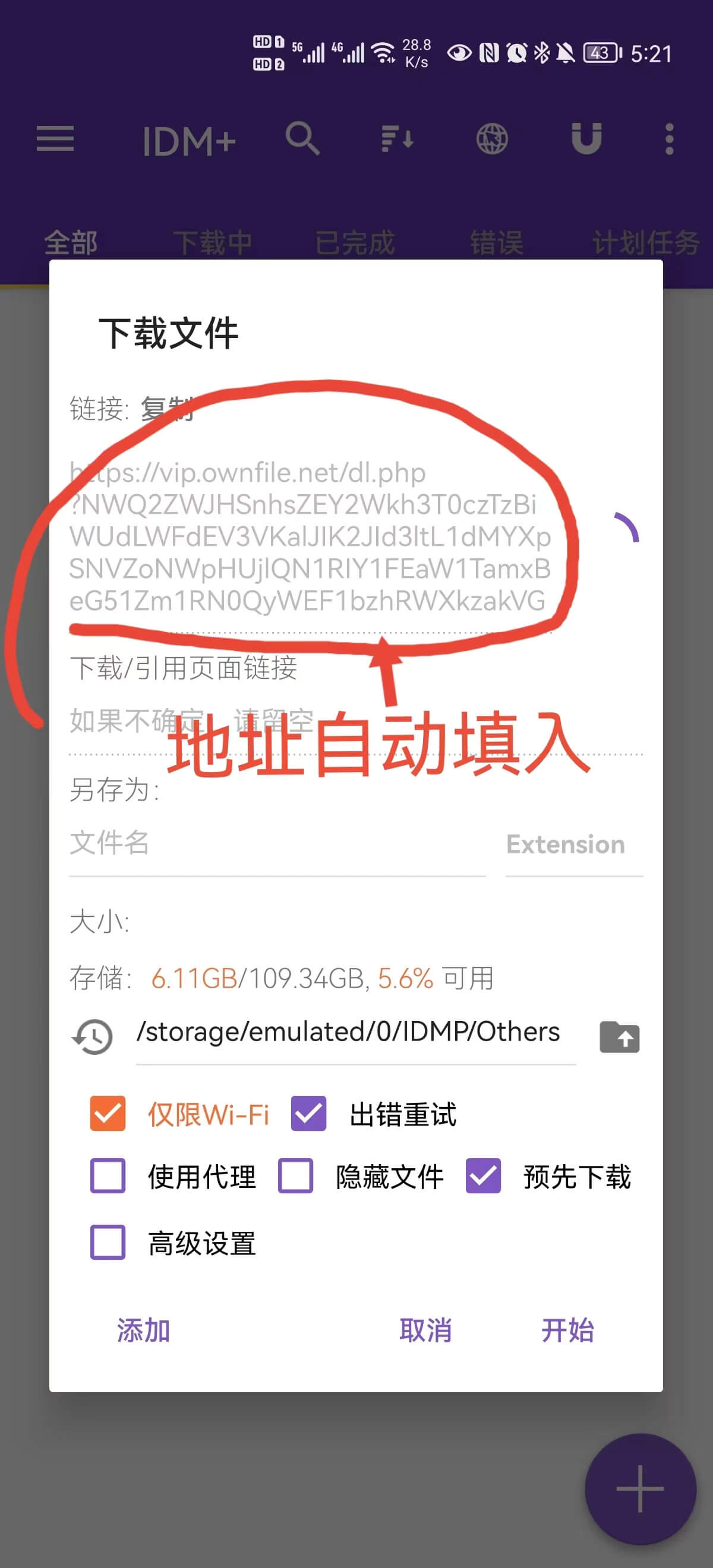 (3)将要下载的567网盘或ownfile的地址复制过来粘贴,并点击确定,注意地址不要填错