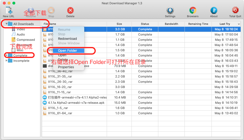 方式一:通过调起NDM (neat download manager)进行下载,只能单文件下载,多文件易断开!但速度较快本页面教程适用(闲鱼所述即该方法)