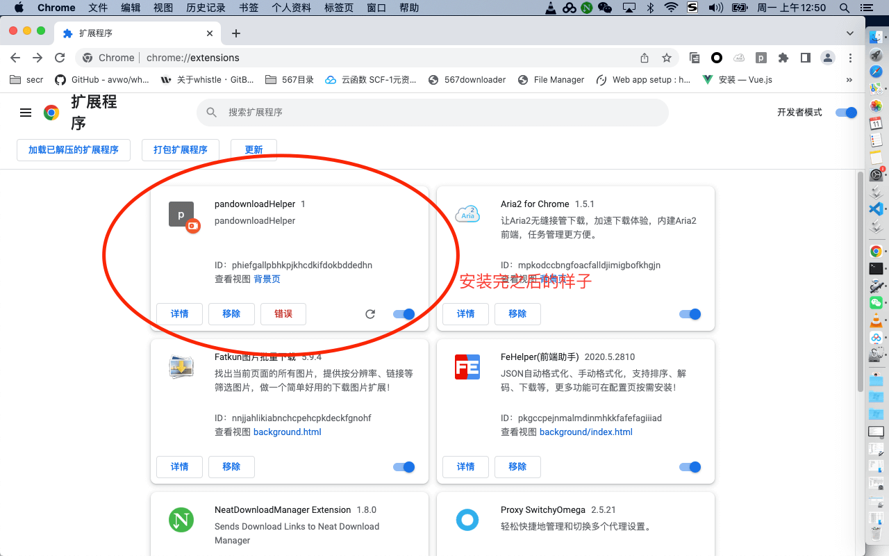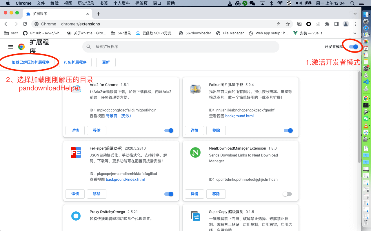 (3)点加载已解压的扩展程序在弹出的选择中选刚刚下载的目录pandownloadHelper